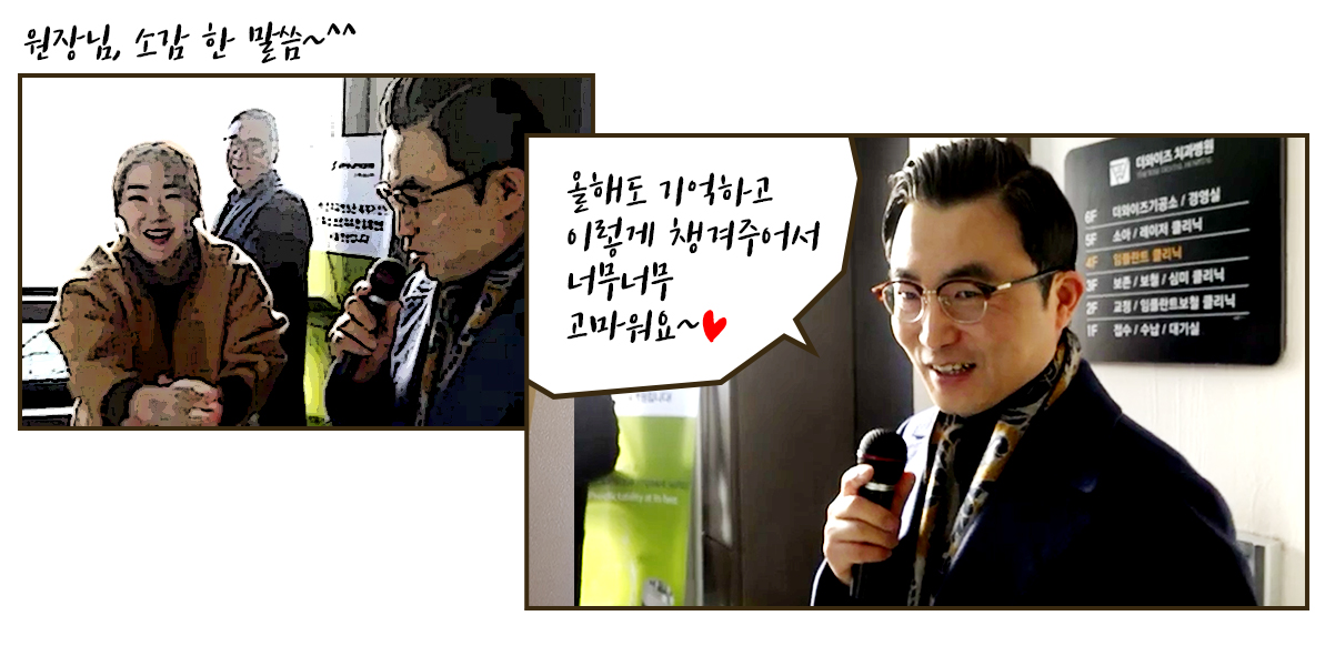 ![]() 마지막으로 원장님 서프라이즈 생신 이벤트에 대한 소감 한말씀 부탁드려요~!! "바쁜 와중에 이렇게 준비해 축하해주어서 너무 고마워요~♥ 매년 너무 고맙습니다^^" 올 한해도 직원들을 위해 병원을 위해 고생하신 원장님! 생신 진심으로 축하드립니다^^ 오늘 하루 약소한 선물과 이벤트 이지만 ♥마음 따뜻한 하루 되시길 바랍니다!!♥ ![]() . . . 서프라이즈 안의 더욱 깜짝 놀랄 서프라이즈가 있었으니!! . . . 웃음 가득했던 숨은 뒷이야기 함께 보실까요? ^^::: ![]() 이벤트 도중 떨어져 버린 케이크.. 한동안 실장님은 직원들에게 "아~~ 케이크가 먹고 싶다~ 왜 이렇게 케이크가 먹고 싶지??? ㅋㅋㅋ" 케이크 개미지옥에서 벗어날 수 없었다는 후일담 입니다~ ㅋㅋㅋㅋㅋㅋㅋㅋ 다음에도 엉뚱발랄하지만 마음만은 따뜻한 더와이즈 직원들의 소소한 일상 소식이 전해질 예정이니 기대해주세요^^