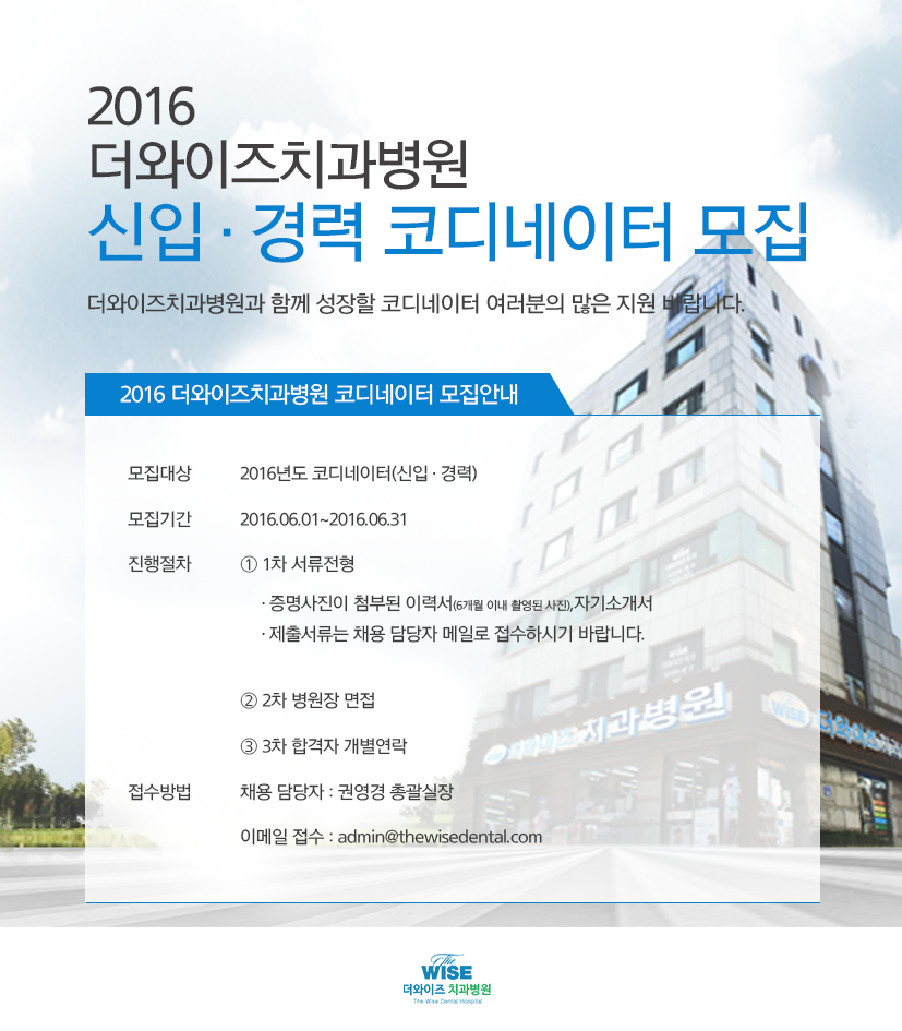 더와이즈치과병원에서 신입·경력의 코디네이터 여러분을 기다립니다.